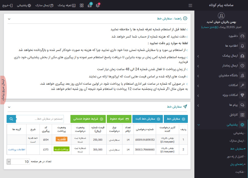 ما 8 خط عمومی در سامانه پیام کوتاه خود در نظر گرفتیم که تمام کاربران میتوانند برای ارسال پیامک تبلیغاتی به آنها دسترسی داشته باشند.